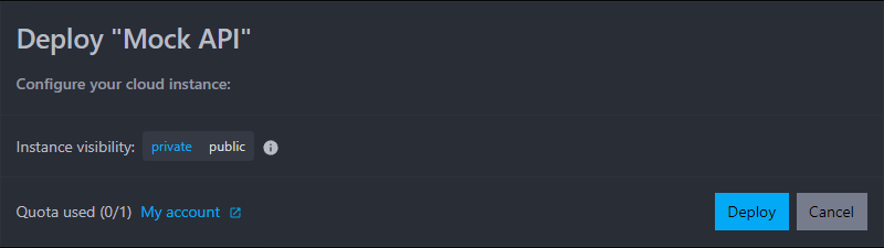 You can further configure your deployment by selecting the visibility of your mock API (public or private):