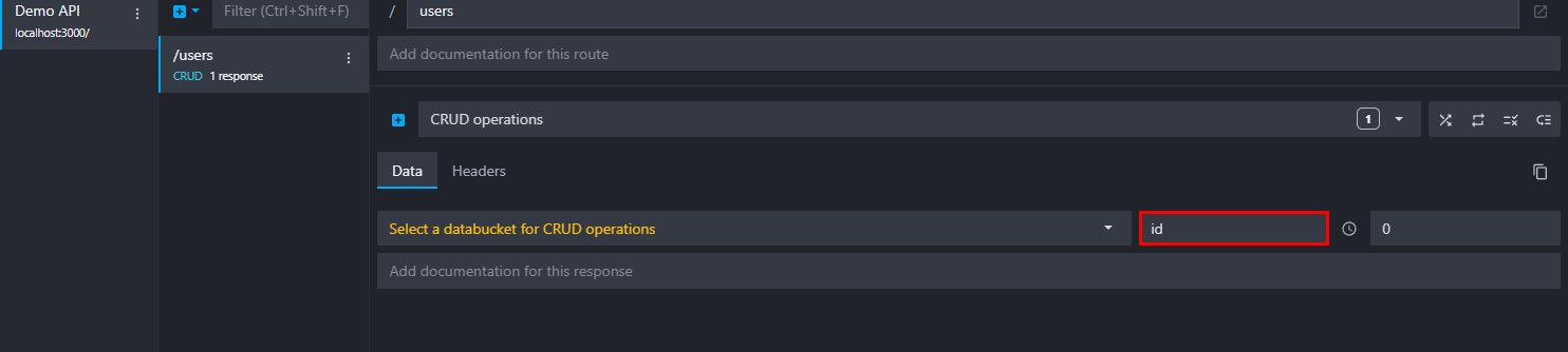 Where Mockoon routes are independent and stateless, CRUD routes can generate multiple endpoints to perform CRUD operations (Create, Read, Update, Delete) on data buckets. Data buckets are generated when the server start, their state persisting between calls. It makes them the perfect tool to simulate small databases.
