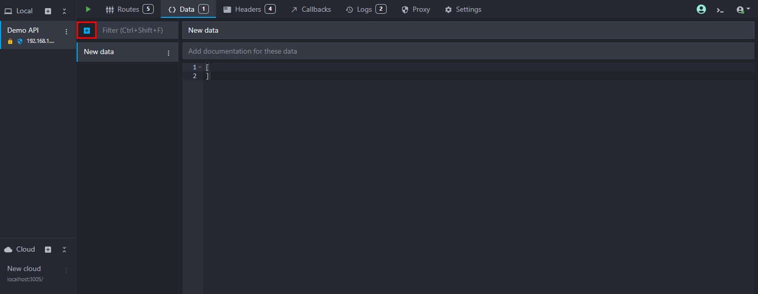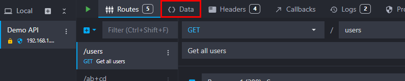 If a data bucket contains request helpers, Mockoon will generate the bucket content only after the first call made to a route using this data bucket (by referencing it directly or using a data helper). It allows you to create bucket "configuration" routes that you can call programmatically with the content you want to reuse in your bucket using the request helpers (body, queryParams, etc.).