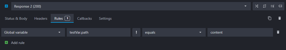 Mockoon now supports global variables in the response rules. This allows you to set a global variable during one call and use it in a rule to change the returned response.