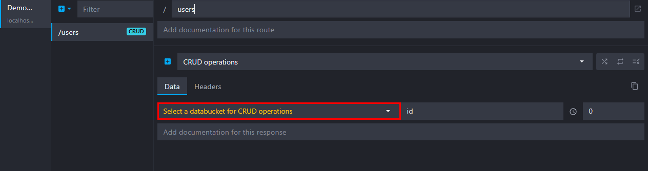 You may have noticed that the CRUD route is not linked to a data bucket yet, hence the "Select a data bucket for CRUD operations" message in the route response: