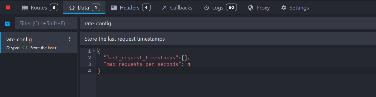 Go to the "Data" view, click "Add data", name it "rate_config" and add the following configuration: