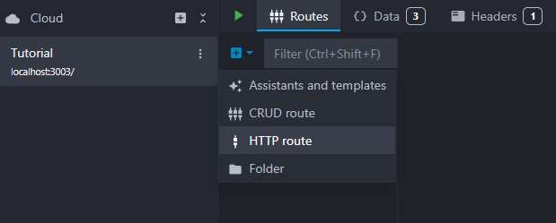 The first step is to create a new HTTP route by clicking on the blue "Add route" button and selecting "HTTP route"