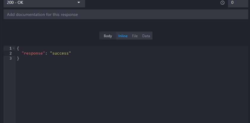 We can customize our new route by adding a simple body with a JSON response: { "response": "success" }.